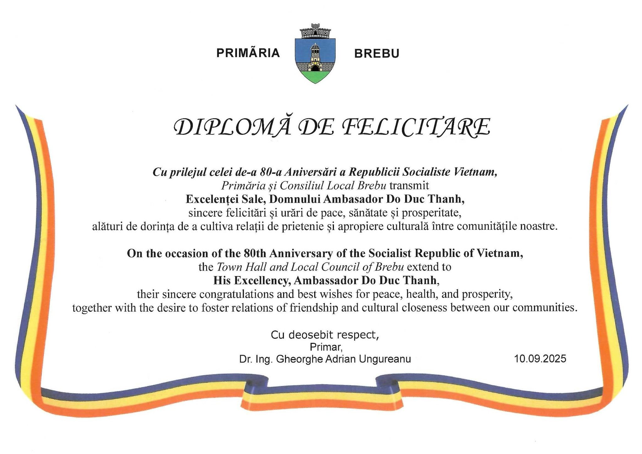 Stimată Doamnă Directoare, dragi cadre didactice, Cu prilejul începutului noului an școlar 2025, Primăria comunei Brebu transmit cele mai sincere urări de sănătate, putere de muncă și împliniri în nobila misiune de a forma caractere și de a îndruma pașii copiilor pe drumul cunoașterii. Devotamentul, profesionalismul și dăruirea dumneavoastră sunt…